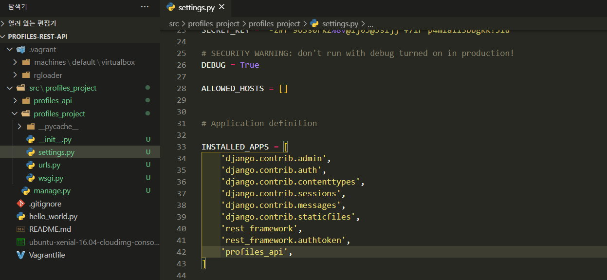 장고 설정 파일에 생성한 앱 등록