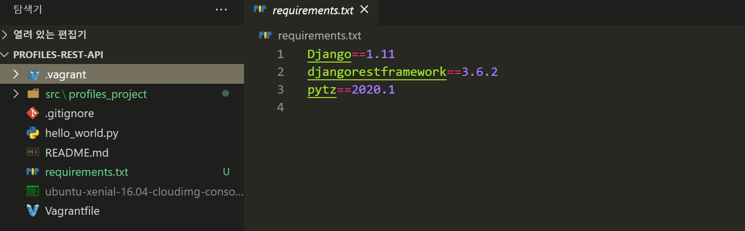 : 내가 만든 애플리케이션이 사용하는 모든 파이썬 패키지 리스트와 버전 정보가 담긴 파일