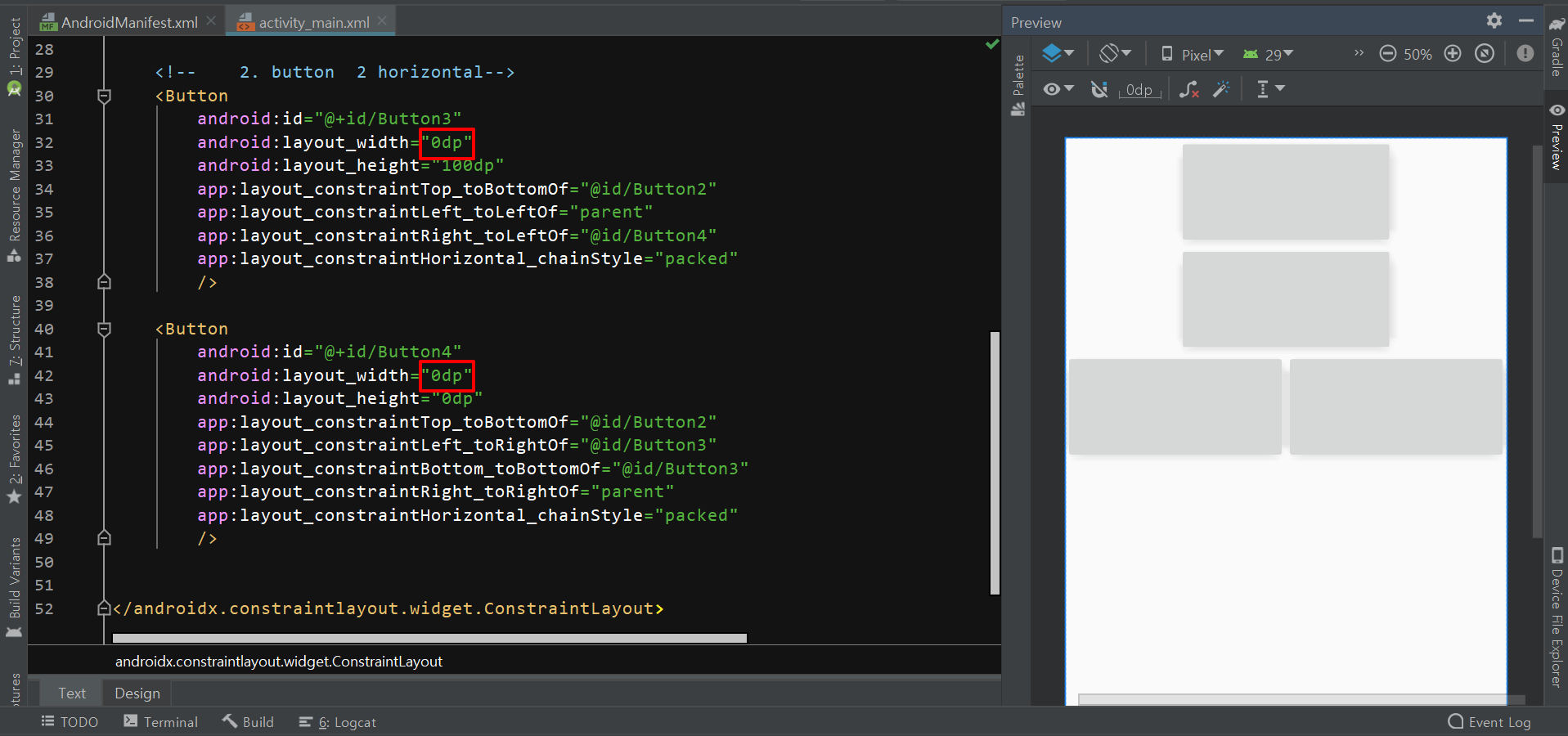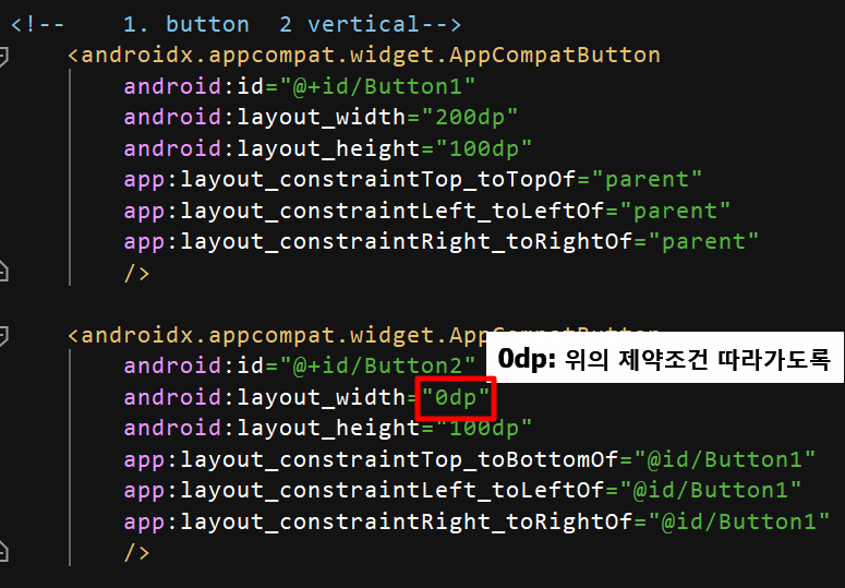 버튼 비율을 1:1로 맞추려면 -> width를 0dp로 바꿔주자