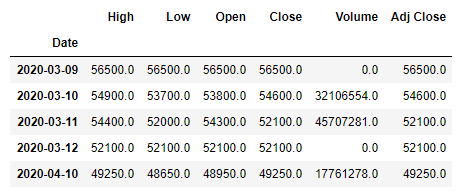 df_samsung = pdr.DataReader('005930.KS', 'yahoo', start, end)