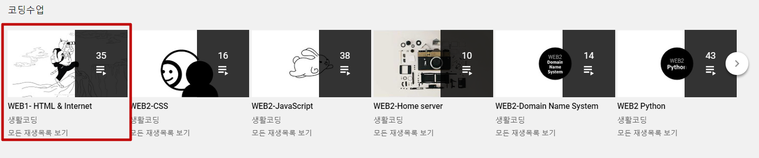 HTML강의는 총 35강이지만 한 개에 10분 내외인 강의가 대부분이고, 수업 소개, 동기, 엔딩크레딧 등 프롤로그, 인터미션, 에필로그식 강의들을 제외하면 30개가 안 될 것 같다. 그마저도 1.5배속 이상으로 들으면 3~4시간이면 수업을 마무리하고 홈페이지 기본 구조를 갖출 수 있다.